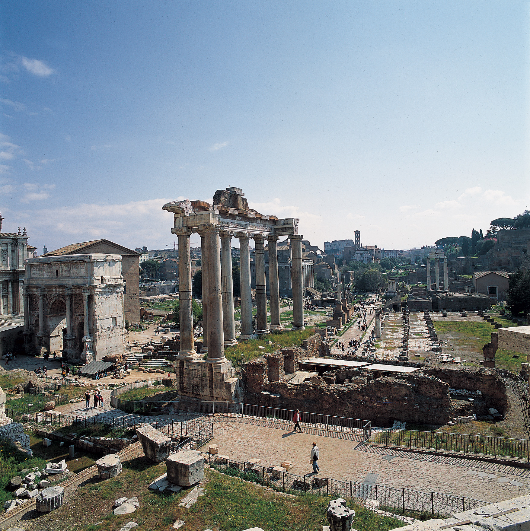 Véritable témoignage de la grandeur de la Rome antique, le Forum Romain a occupé une place centrale dans la vie de l'Urbs pendant plus de 1000 ans: des Rois étrusques à la fondation de la République, des guerres civiles et la fondation de l'Empire jusqu'à la chute de l'Empire d'Occident. Il abrite les vestiges d'une multitude de monuments emblématiques de l'histoire romaine : temples, basiliques, arcs de triomphes. C'est un exercice passionnant que de parcourir ces ruines et de reconstituer mentalement la cité antique et son effervescence. En savoir +