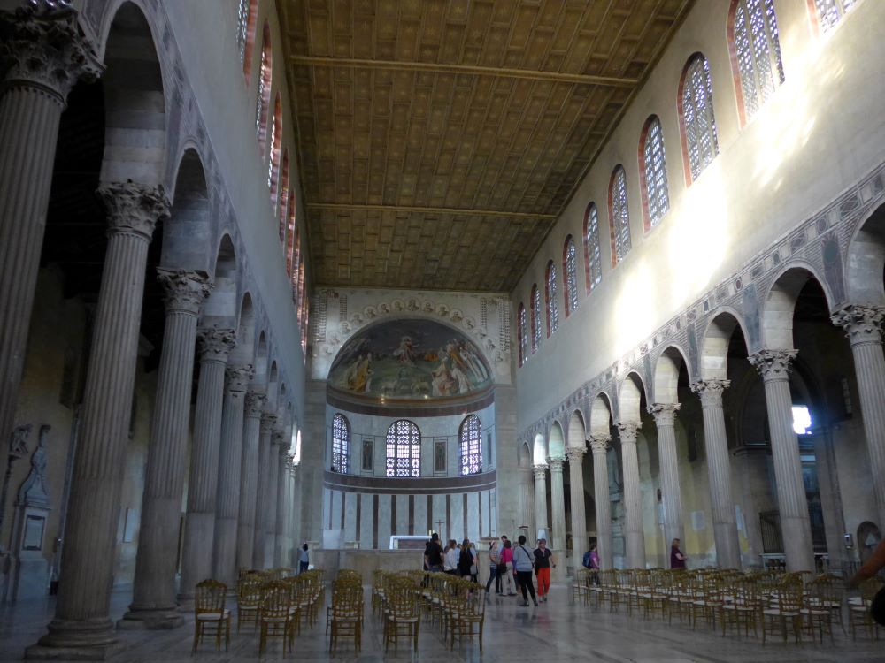 Établie sur les vestiges de la demeure de la sainte, est un exemple marquant de l'architecture chrétienne du Ve siècle. Son entrée principale est ornée de portes en bois de cyprès gravées de scènes bibliques, dont la Crucifixion, la première représentation connue de ce genre. À l'intérieur, vingt-quatre colonnes corinthiennes divisent un espace étonnamment grand et sobrement décoré qui se distingue des autres églises paléochrétiennes souvent dénaturées par des restaurations successives au moyen âge ou pendant la période baroque. En savoir +