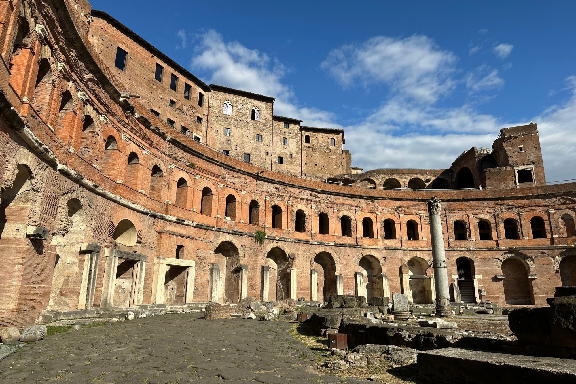 Construits au début du IIe siècle, en même temps que la Colonne et le Forum de Trajan, ce bâtiment étendu sur plusieurs niveaux abritait des boutiques, des bureaux et des espaces publics. Il est l'un des exemples les mieux conservés d'architecture romaine et donne un aperçu unique du degré de développement atteint par Rome à l'apogée de l'Empire. En savoir +