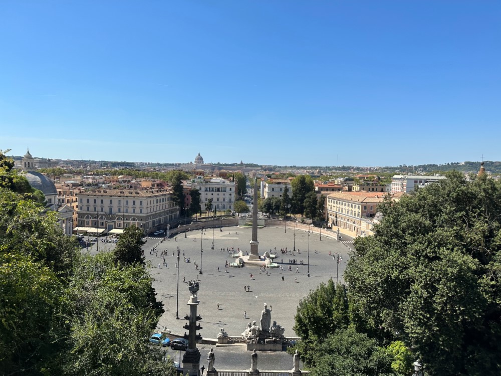 Il s'agit d'un promontoire offrant une vue panoramique sur la Place du Peuple en contrebas. Le Mont Pincio fait frontière entre le centre historique et le Villa Borghese. Accessible depuis le parc ou en arrivant de la Trinité des Monts, la terrasse est un point de rendez-vous prisé des Romains et des touristes pour admirer le coucher du soleil sur la Place du Peuple et le Vatican au loin. En savoir +