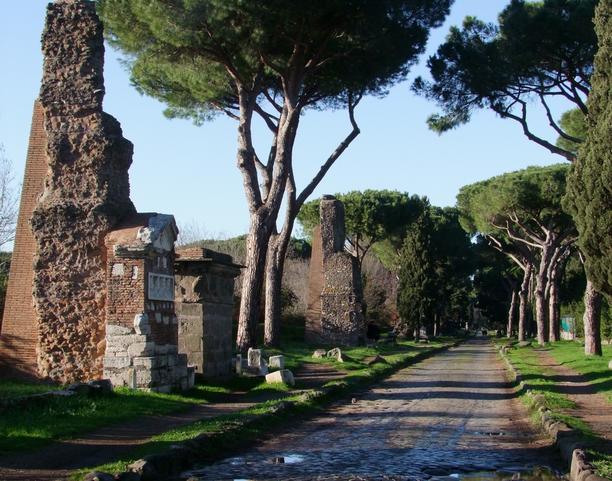 Une des voies romaines les plus anciennes et sans doute la plus célèbre, construite en 312 av. J.-C., elle prend le nom de son ingénieur principal Appius Claudius. Cette voie reliait à l'origine Rome à Brindisi et était un élément clé du réseau routier de la République puis de l'Empire Romain. Aujourd'hui, une partie de la route est préservée dans un parc protégé au sud-ouest de la ville. Elle est bordée par des sites antiques, notamment des catacombes paléochrétiennes ainsi que des vestiges de villas romaines. En savoir +